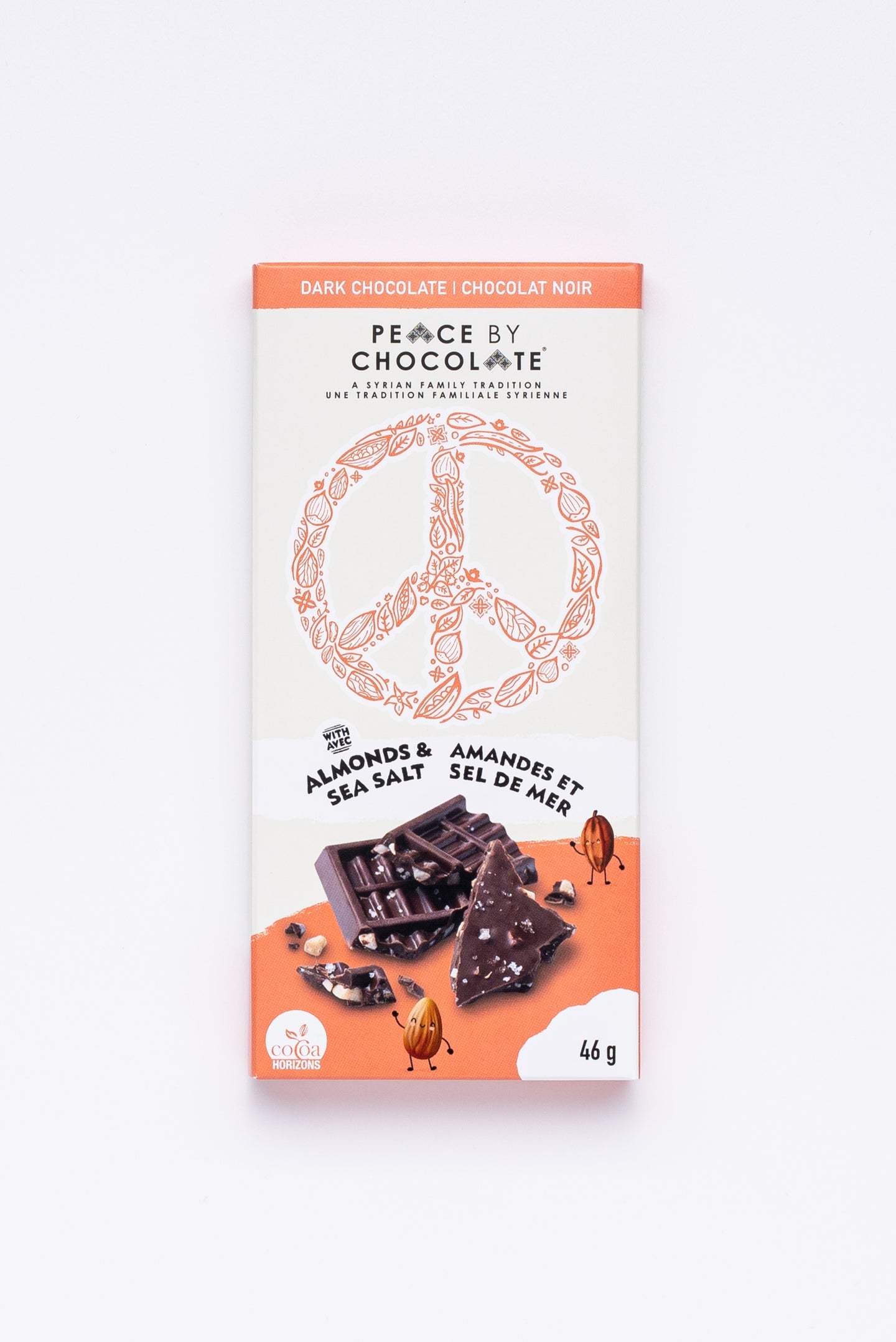 Peace in many languages! The Peace Bars are the latest and greatest creations and we are happy to share them with you! Available in pure Milk Chocolate, the classic Milk Chocolate with Hazelnut, Dark Chocolate with Almonds and Sea salt, and Gold Chocolate with Seas salt and Crisped Rice pieces!