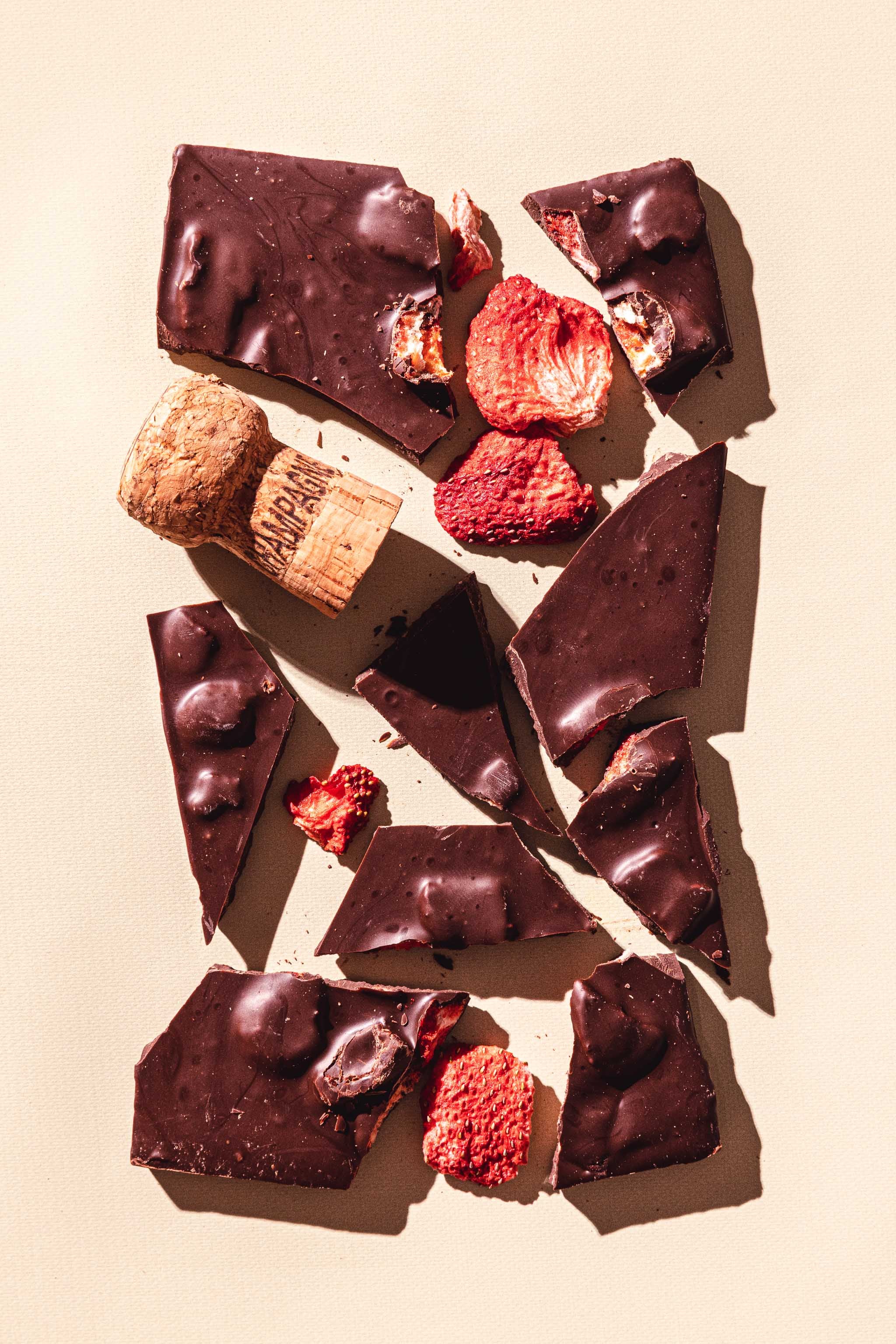 Dark Chocolate (Cocoa Mass, Sugar, Cocoa Butter, Soy Lecithin as an Emulsifier, Vanilla), Strawberries, Champagne