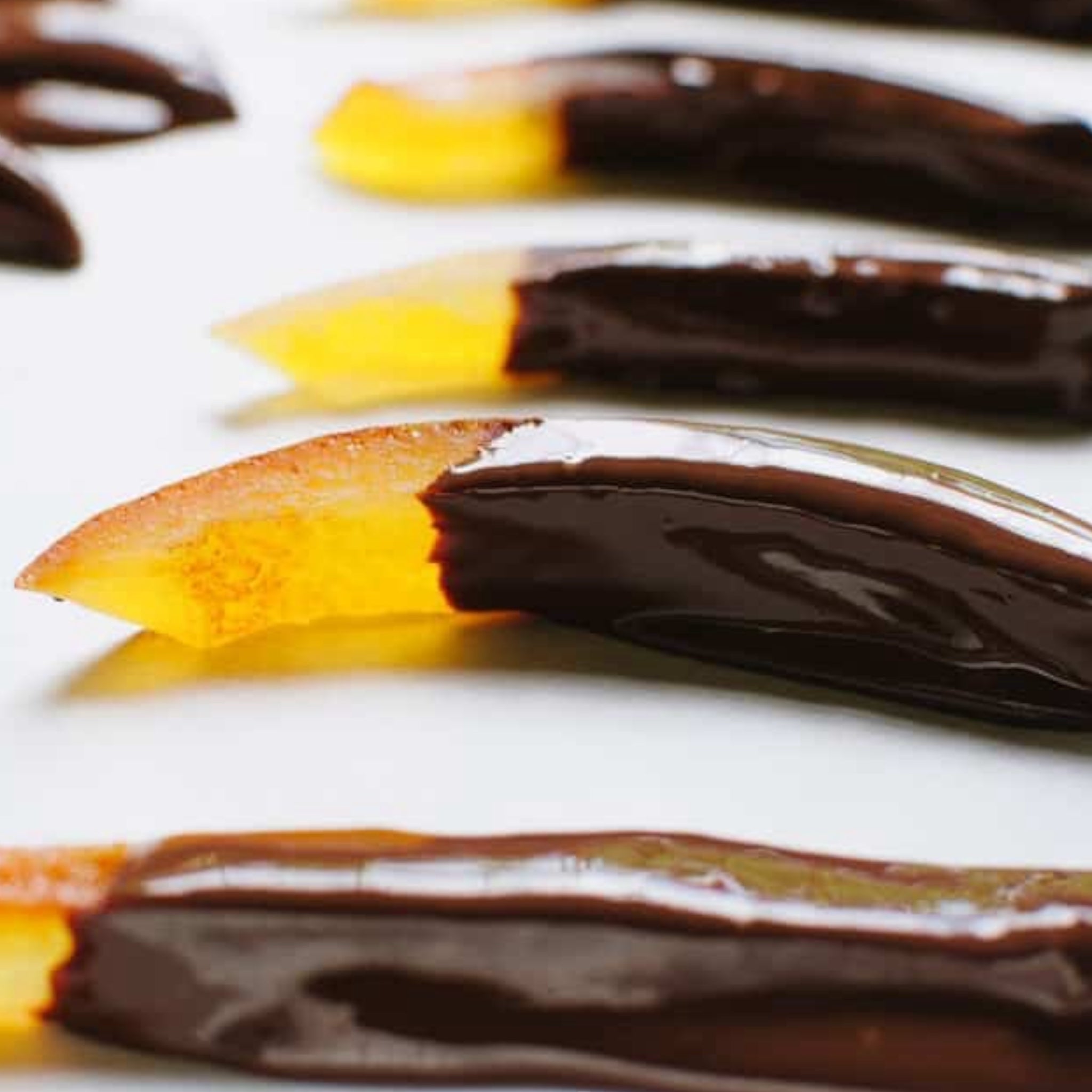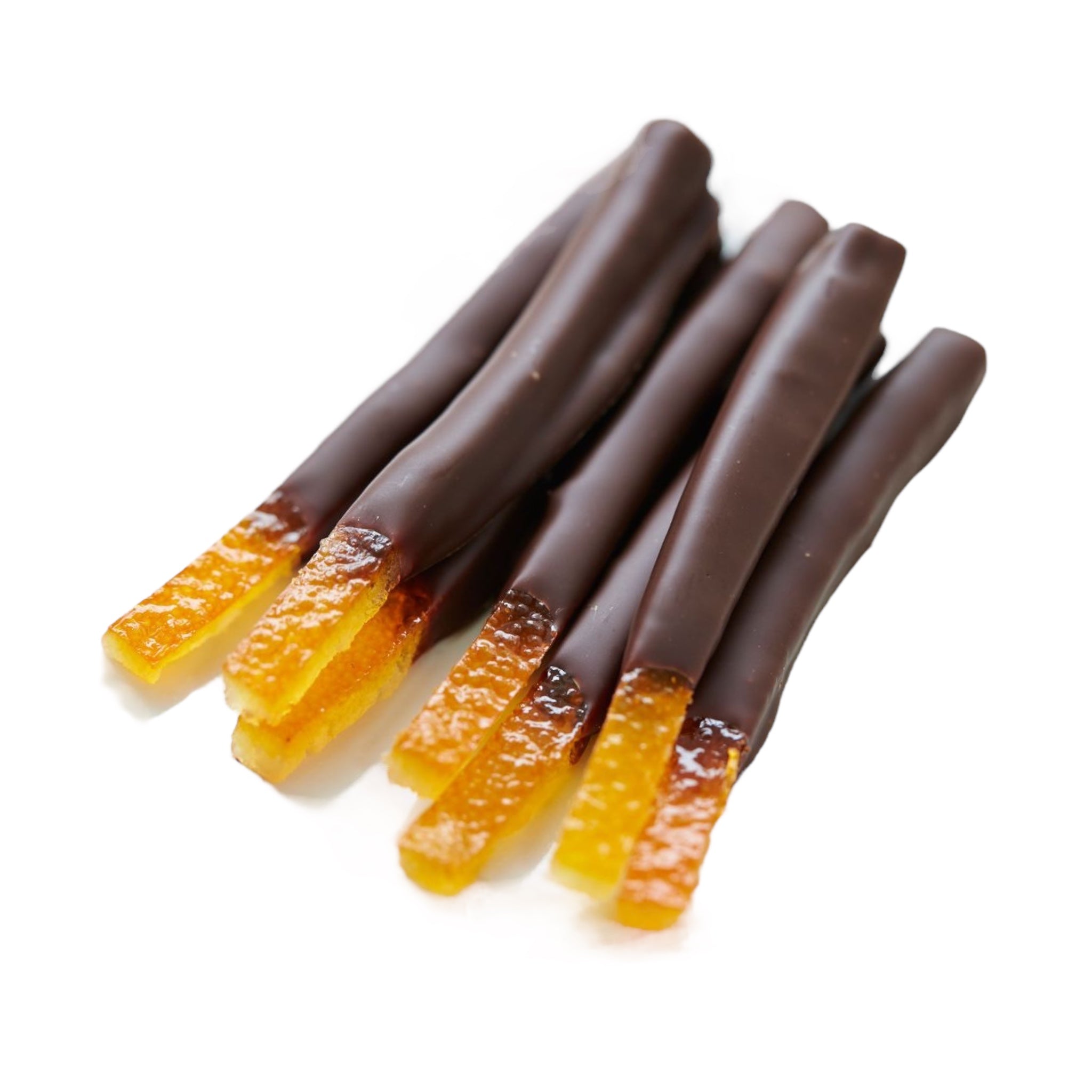 Our handcrafted orange peels are slow-cooked to perfection and dipped in premium milk or dark chocolate, offering a delightful contrast between citrusy zest and rich, velvety chocolate. Perfect as a snack, dessert, or gift, enjoy this luxurious treat and indulge in the exquisite harmony of flavours.