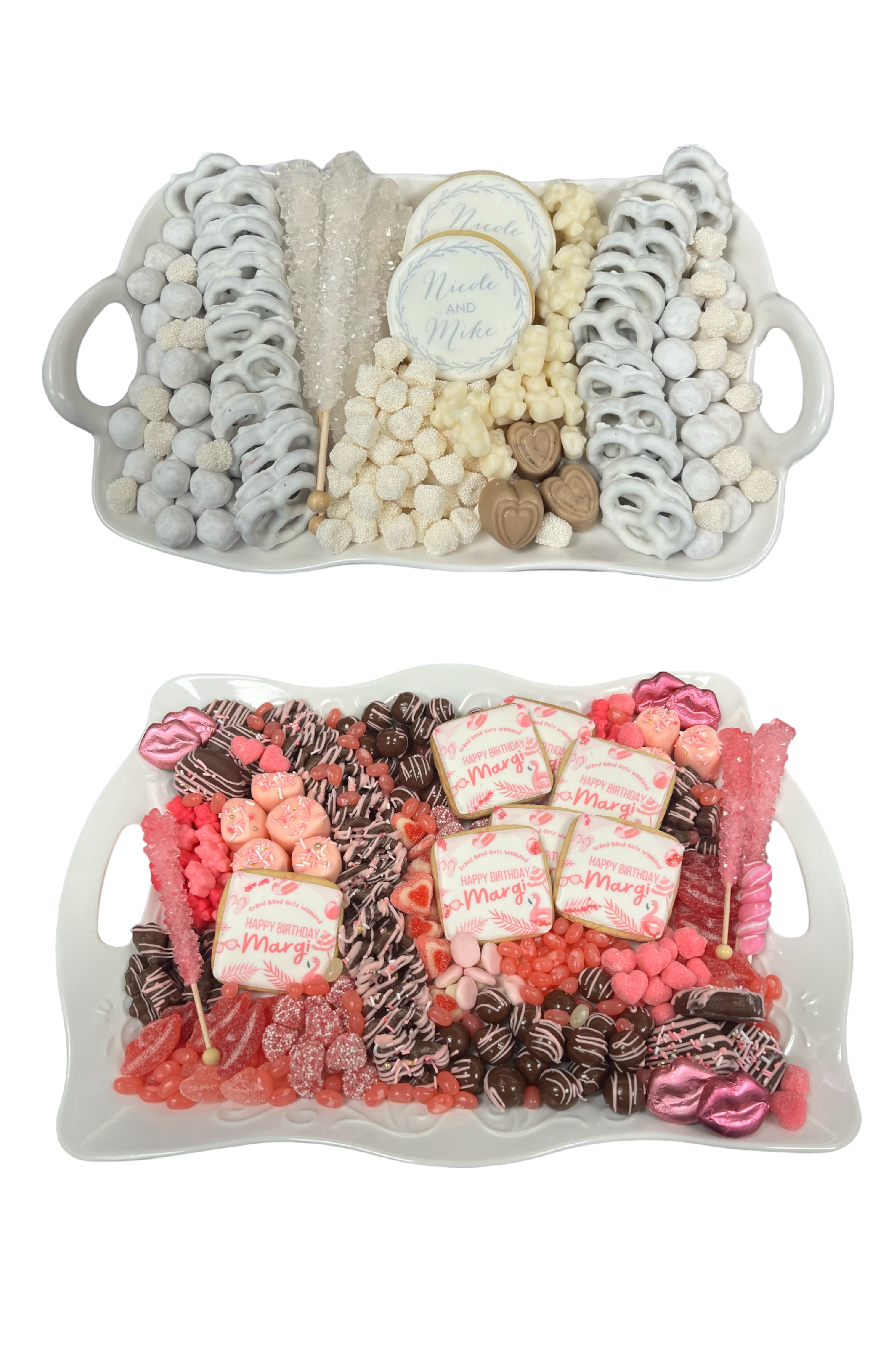 Discover our custom platters, designed to delight with a curated assortment of candies and chocolates. Each platter can be personalized to suit your event’s theme or your unique preferences. Whether for a special occasion, corporate event, or as a thoughtful gift, our custom platters offer a beautiful and delicious way to celebrate. Contact us to create a personalized platter that will impress and satisfy.