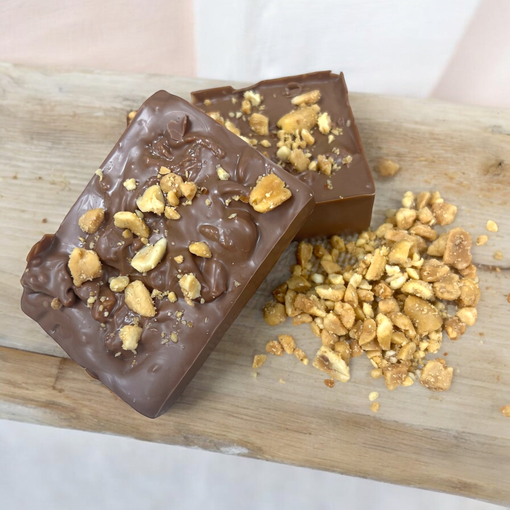 Caramel Peanut Crunch Milk Chocolate Bark is a sumptuous treat that combines the creamy richness of Belgian milk chocolate with a delightful mix of sweet and savoury flavours. Each piece features a generous layer of smooth milk chocolate studded with crunchy roasted peanuts and swirled with ribbons of our house-made buttery caramel.