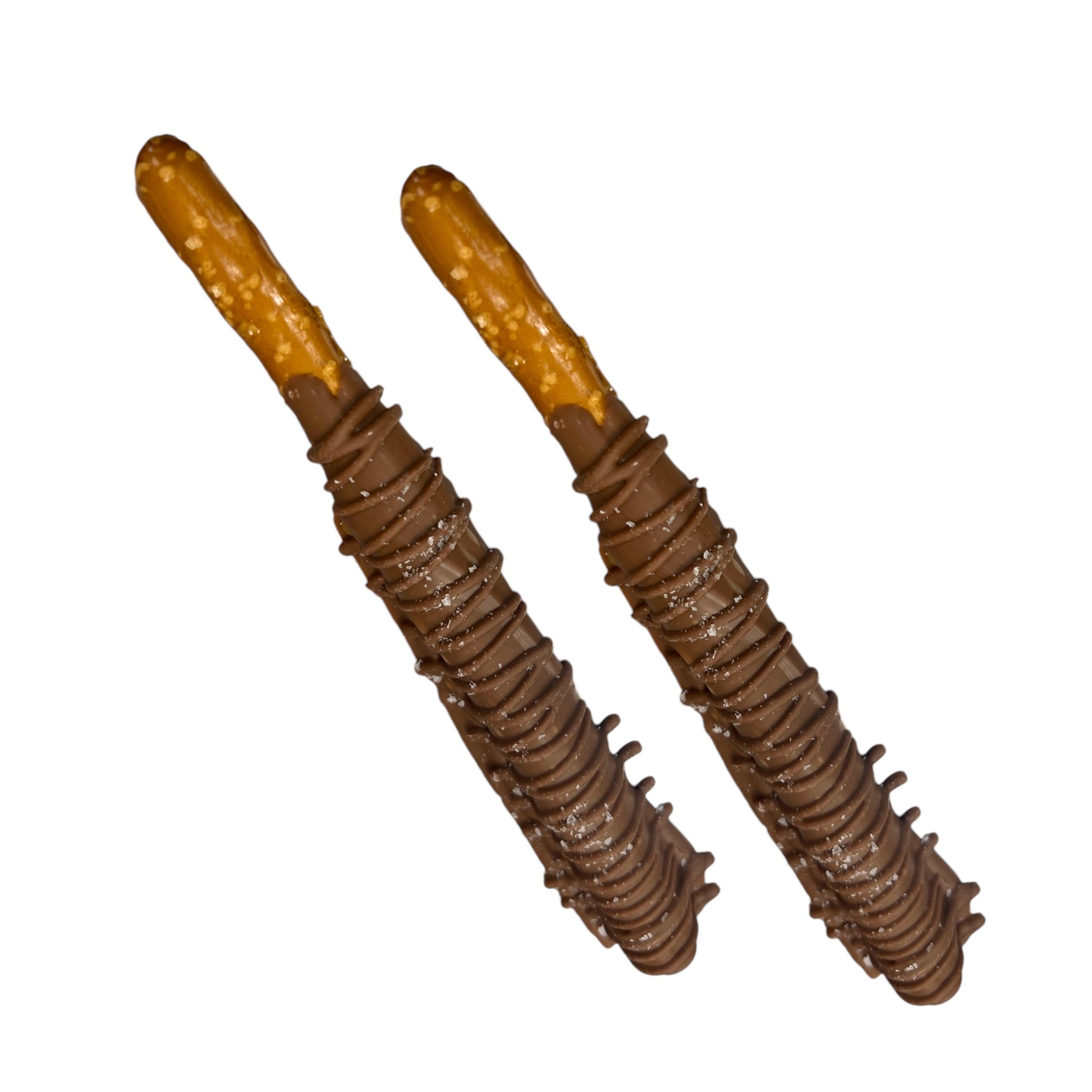 These decadent Chocolate Caramel Pretzel Rods have a layer of chewy house-made caramel over salty pretzels coated in Milk and Dark Chocolate topped with flaky Maldon Sea Salt.