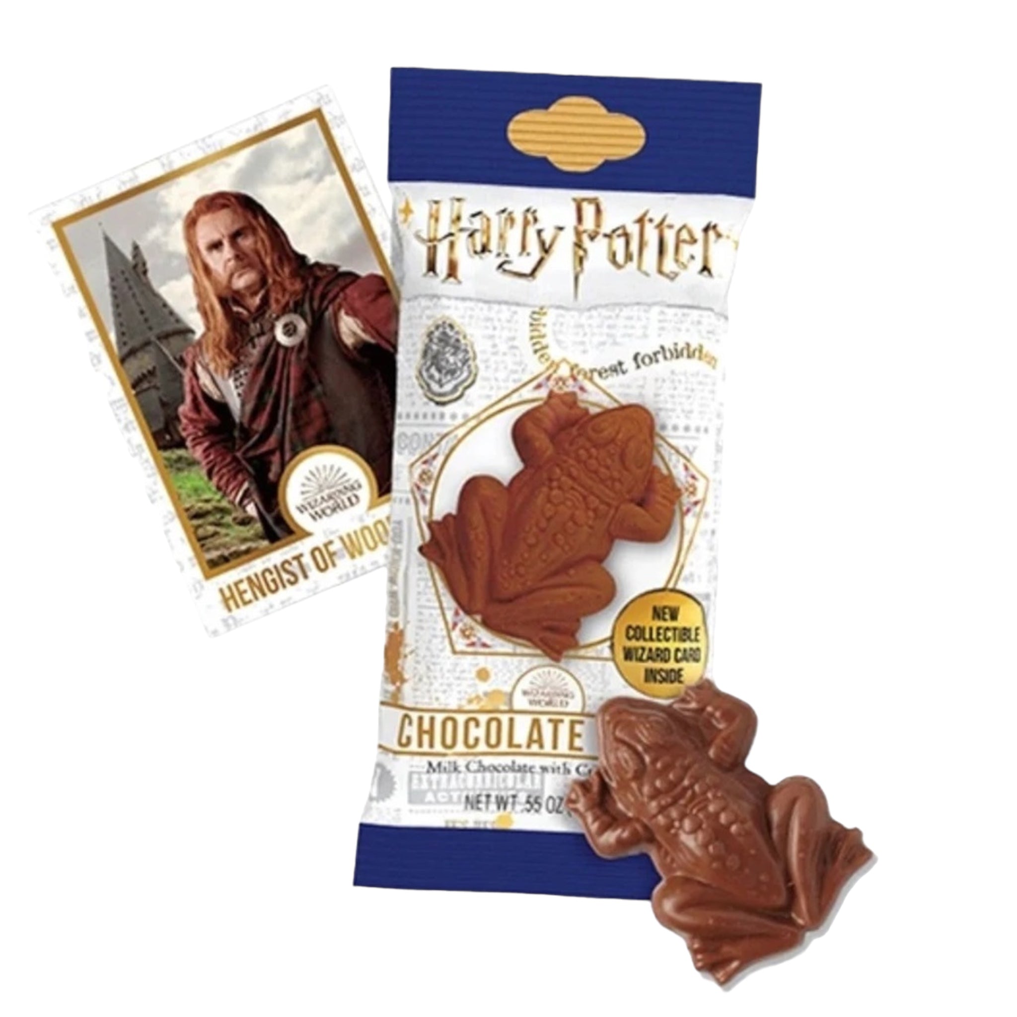 Hop into some magical deliciousness with the Harry Potter Chocolate Frog! This yummy frog is ready to leap right into your mouth! Made with creamy, rich milk chocolate and crispy bits of rice for that slightly crunchy texture. Makes an incredible indulgence to enjoy while watching Harry Potter or would make an ideal gift for any Harry Potter fan! Taste the magic with the Harry Potter Chocolate Frog! 15g