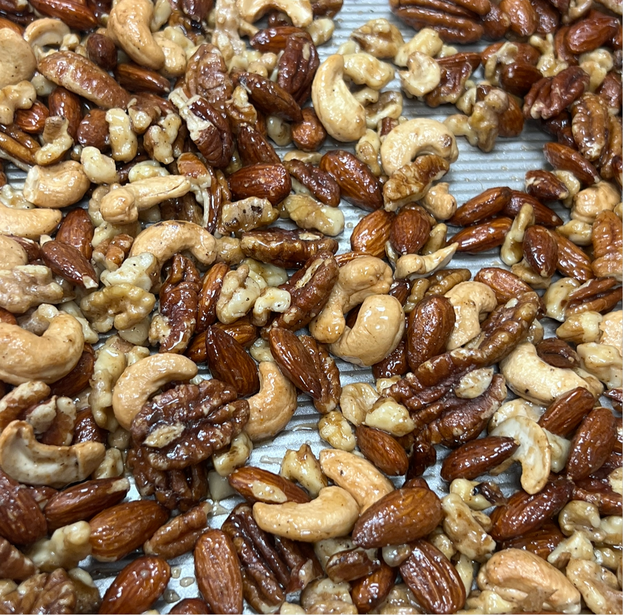 Almonds, Cashews,Walnuts,Pecans, Sugar, Butter, Salt, Cumin, Pepper, Cayenne Pepper