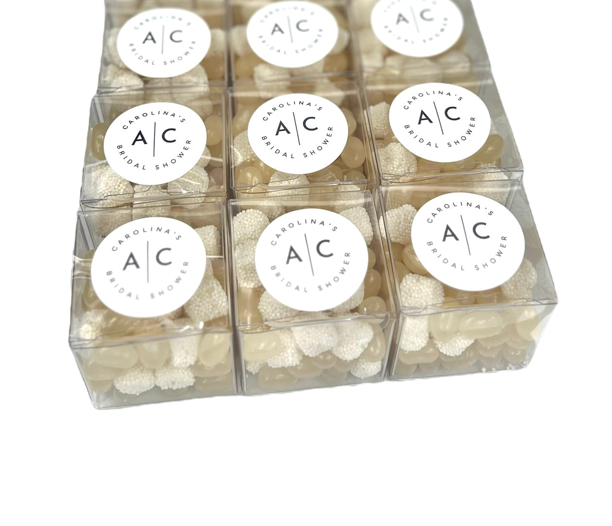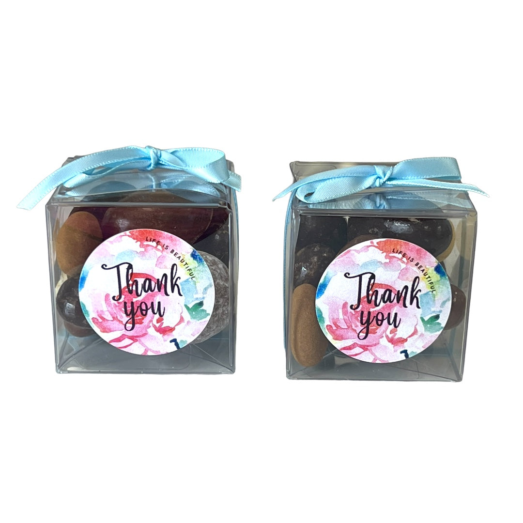 Personalize your sweets with a message or image printed on labels. Treat your loved ones to a gift that is guaranteed to put a smile on their face. Contact us for details about custom candy flavours and colours. This product measures 2" x 2" x 2"