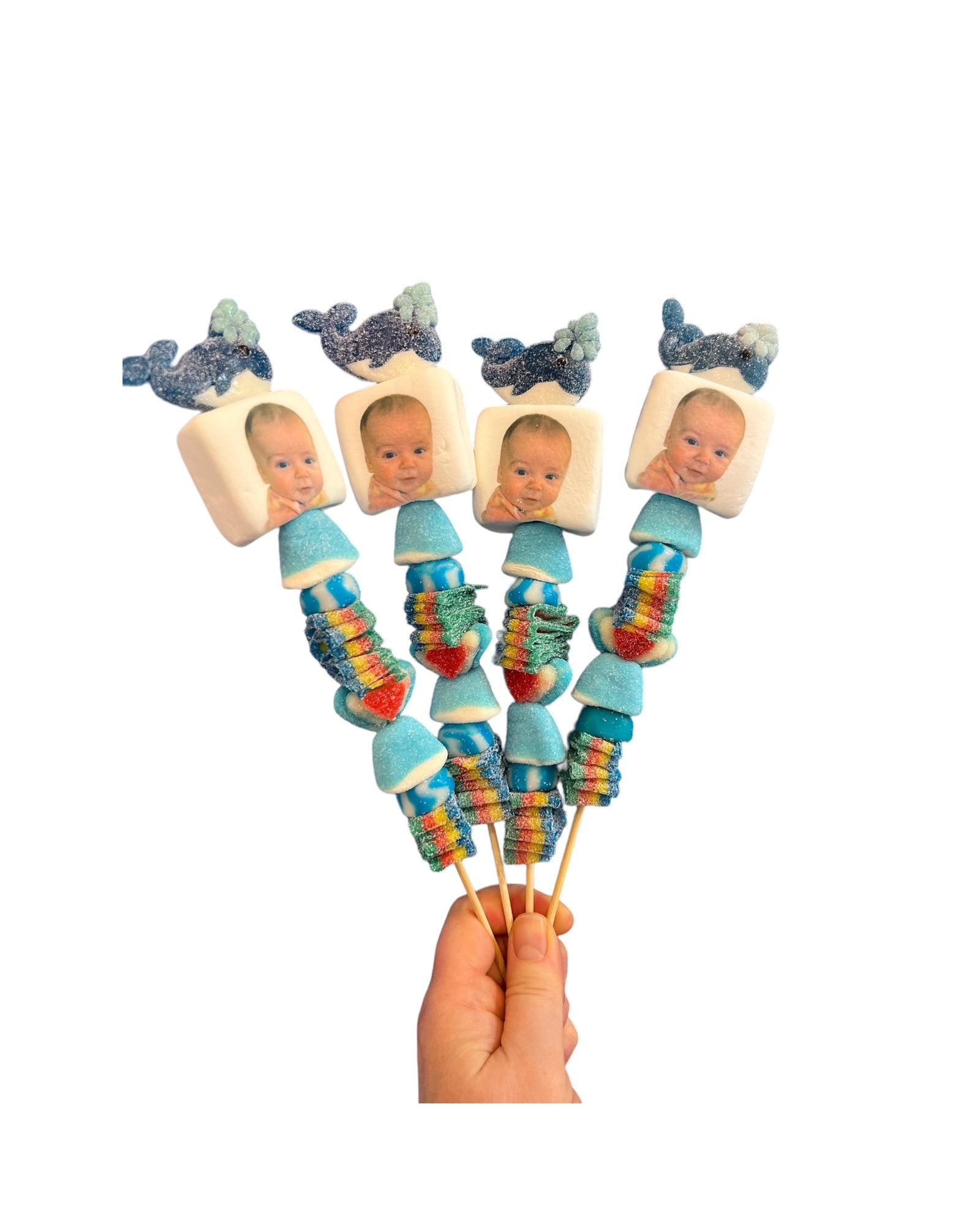 Evelyn's hand decorated candy kabobs are perfect for birthday parties, baby showers or any other special occasion! Not only are these treats adorable they're stacked with sweet and sour candies everyone loves.
