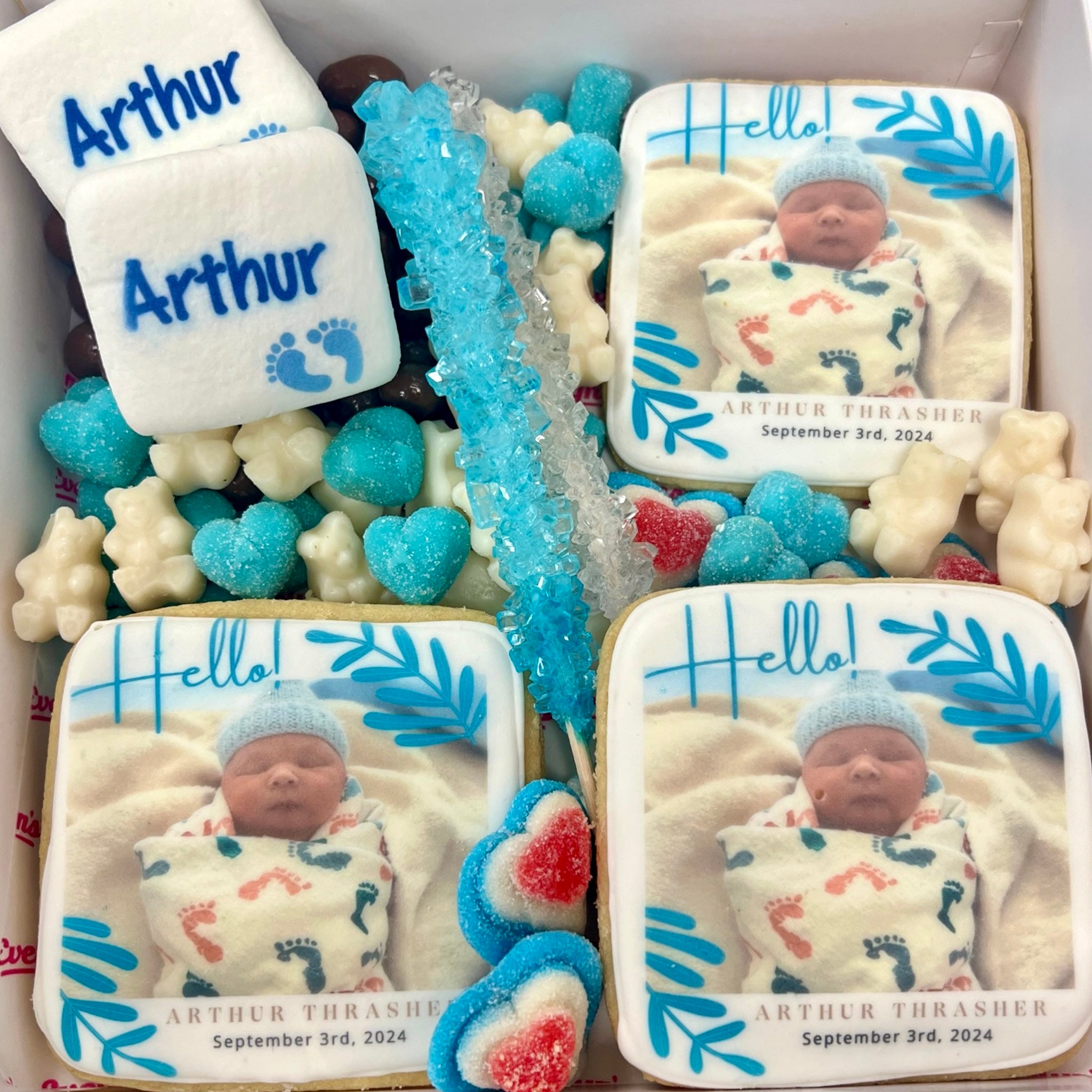 Personalize your dessert with a message or image with our printed sugar cookies. These are a soft, delicious sugar cookie iced with buttercream icing and topped with edible prints. Perfect for branding, events, or just for fun, these cookies are sure to leave a lasting impression. Please send contact us for more details on custom orders, sizes of cookies and time needed to prepare your order.