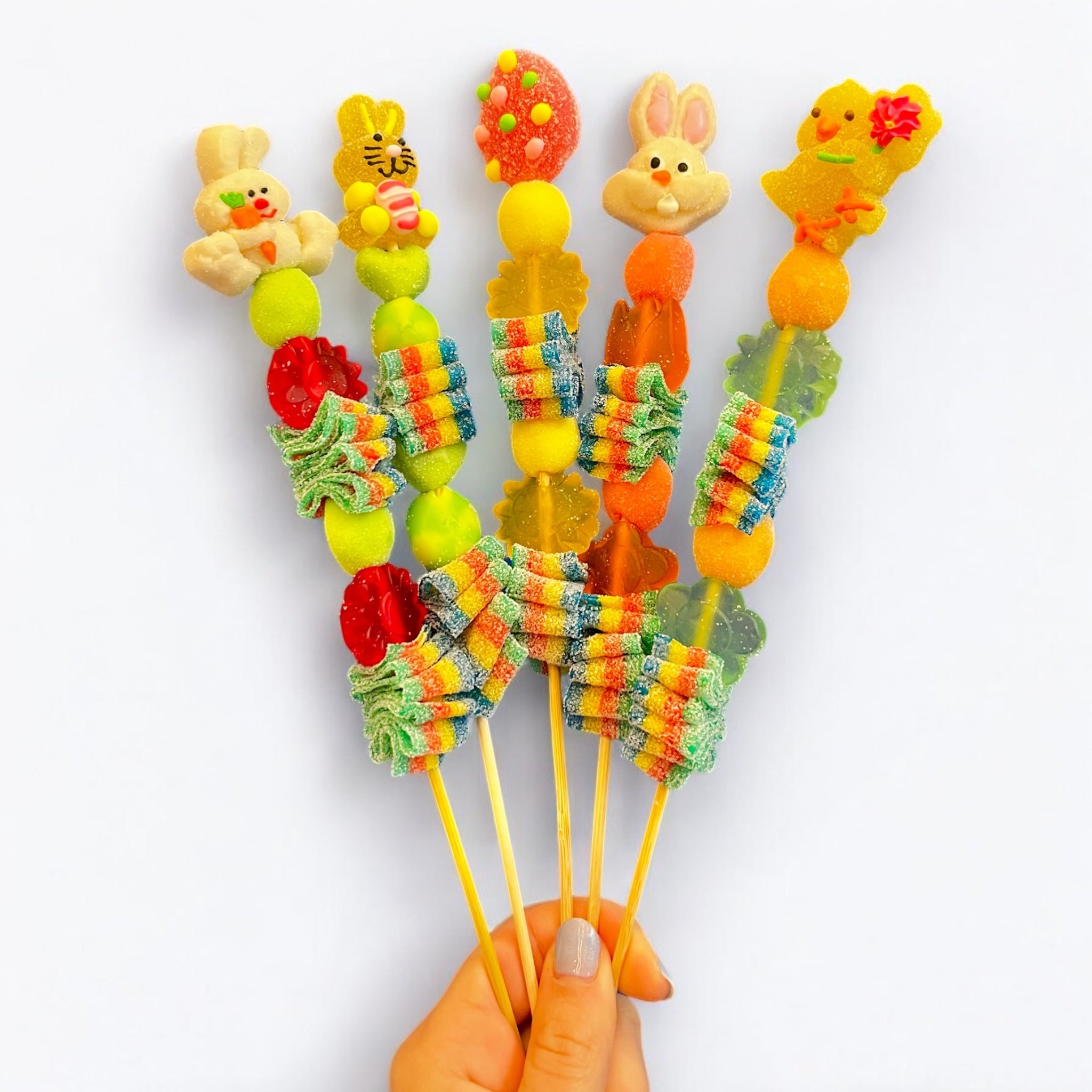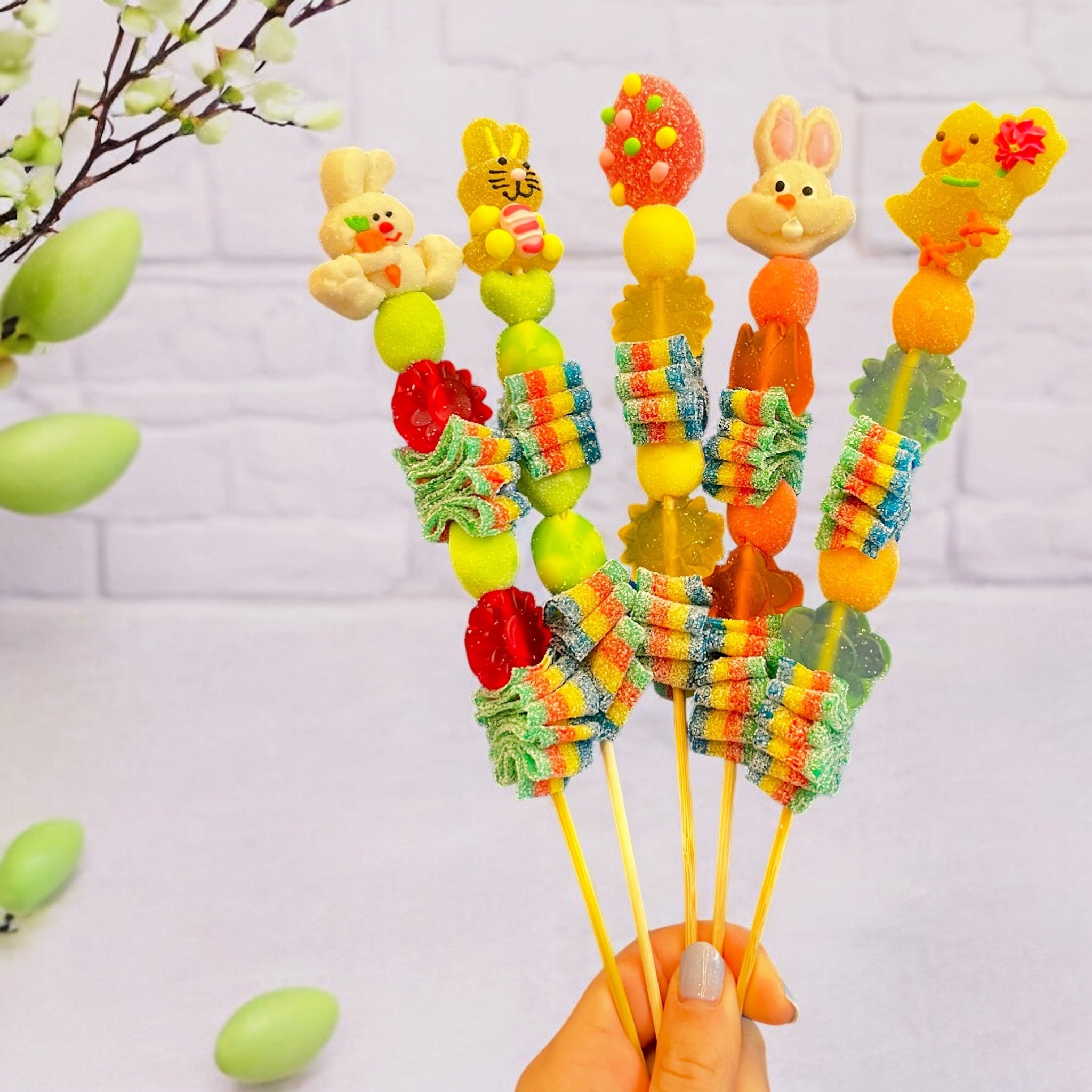 Get ready for a sweet Easter treat with our Easter Candy Kabobs! These colourful creations features a delightful mix of sweet and sour gummies and seasonal candies, all expertly stacked on a festive stick. Each kabob is a whimsical blend of flavours and textures, making it the perfect handheld snack for parties, Easter Baskets or just a sweet indulgence at home. Wrapped in vibrant, seasonal colours, these candy kabobs are as much a treat for the eyes as they are for the taste buds.