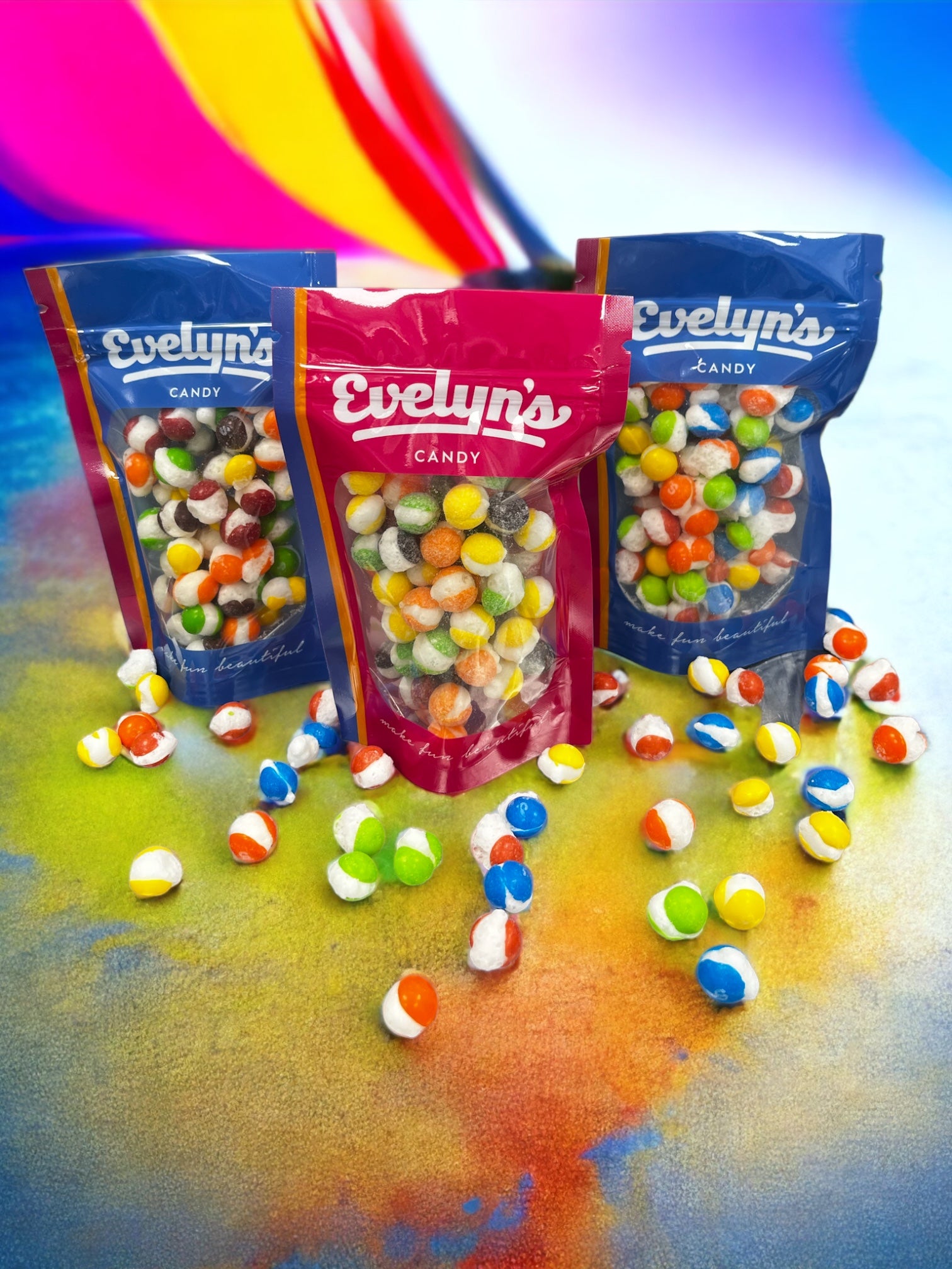 A unique, crispy, intensified twist on some of the most classic candies! Freeze-dried candy is a unique and interesting treat! The freeze-drying process removes the water content from the candy, leaving behind a lightweight, crumbly and intensely sweet candy 70g