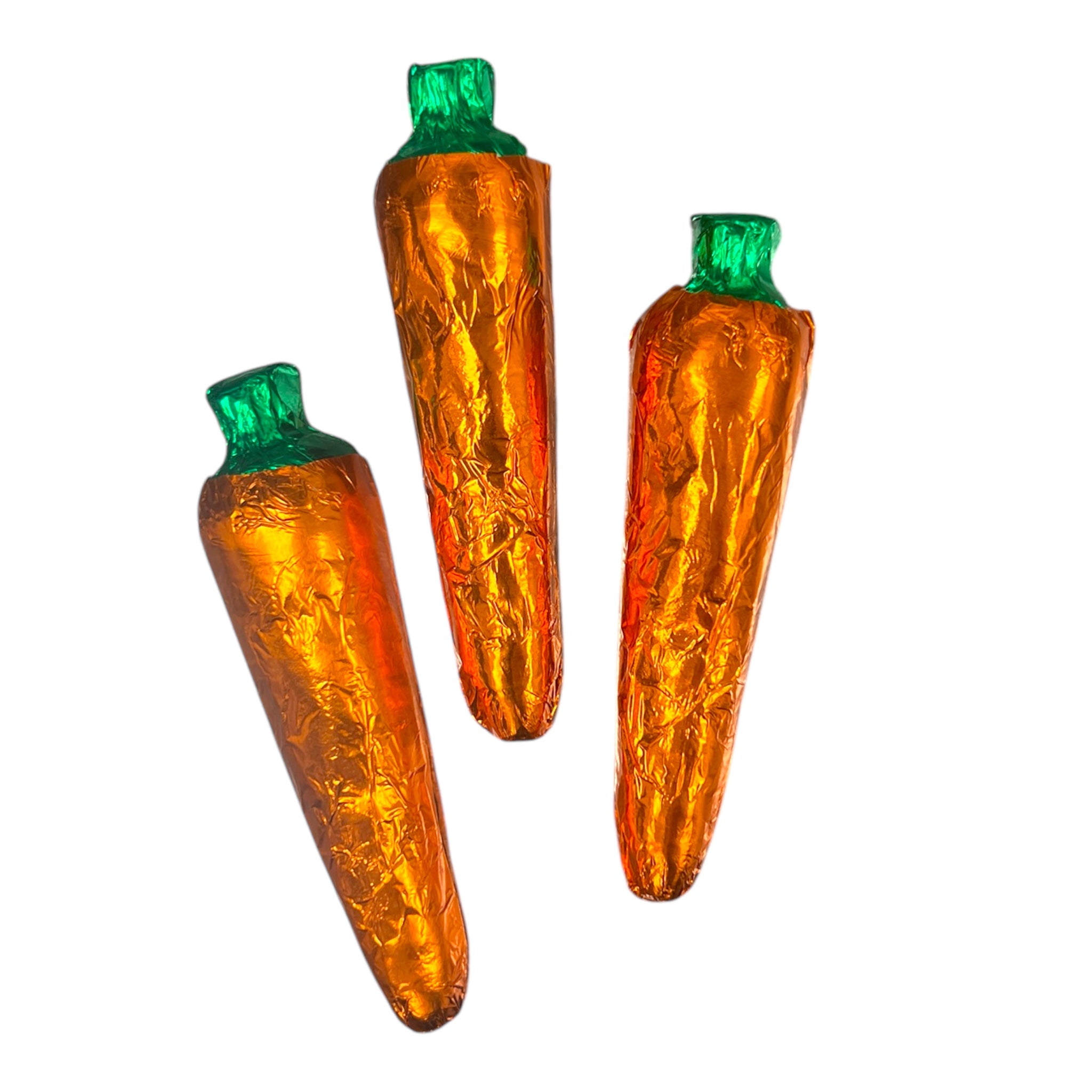 Milk Chocolate foil-wrapped carrots are a fun and festive treat, for Easter and springtime celebrations! The foil wrapping adds a colourful, seasonal touch, while the milk chocolate inside makes them sweet and indulgent.