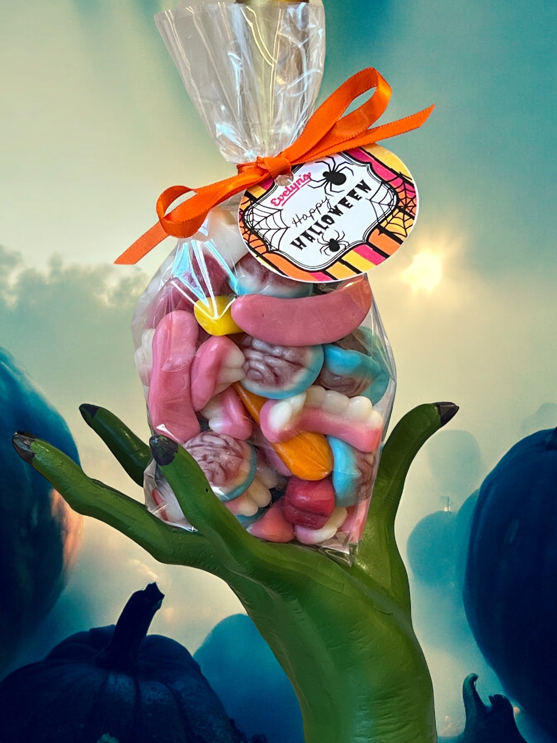 Get ready for a ghoulishly delightful treat this Halloween with our Sweet and Spooky Mixed Gummy Candy! This vibrant assortment features an array of creepy critters and enchanting shapes, from missing body parts to eerie skulls and oozy brains. Each gummy is bursting with fruity flavours that are sure to thrill your taste buds while adding a playful touch to your Halloween festivities. Perfect for trick-or-treaters, party favorus, or a spooky snack for movie night, this candy mix is the ultimate blend of sweet and spooky, guaranteed to bring a smile to every little monster’s face!