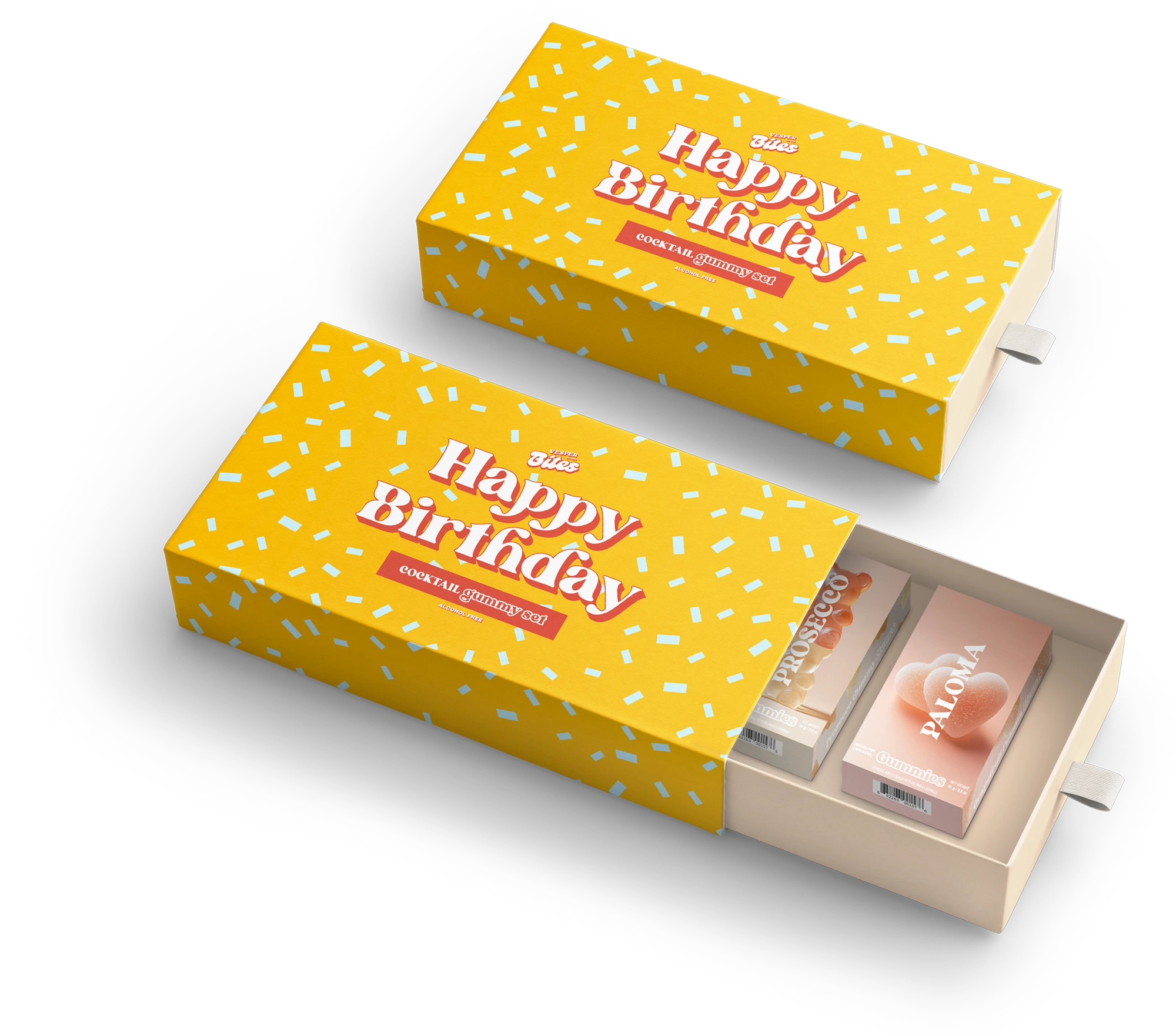 This festive gift box brings the celebration to life with the sparkling elegance of Prosecco Bears, the tangy zest of Paloma Hearts, and the refreshing sweetness of Peach Bellini Hearts. Perfect for parties, gifting, or indulging in a vibrant and flavorful treat that adds a touch of fun and sophistication to any occasion.