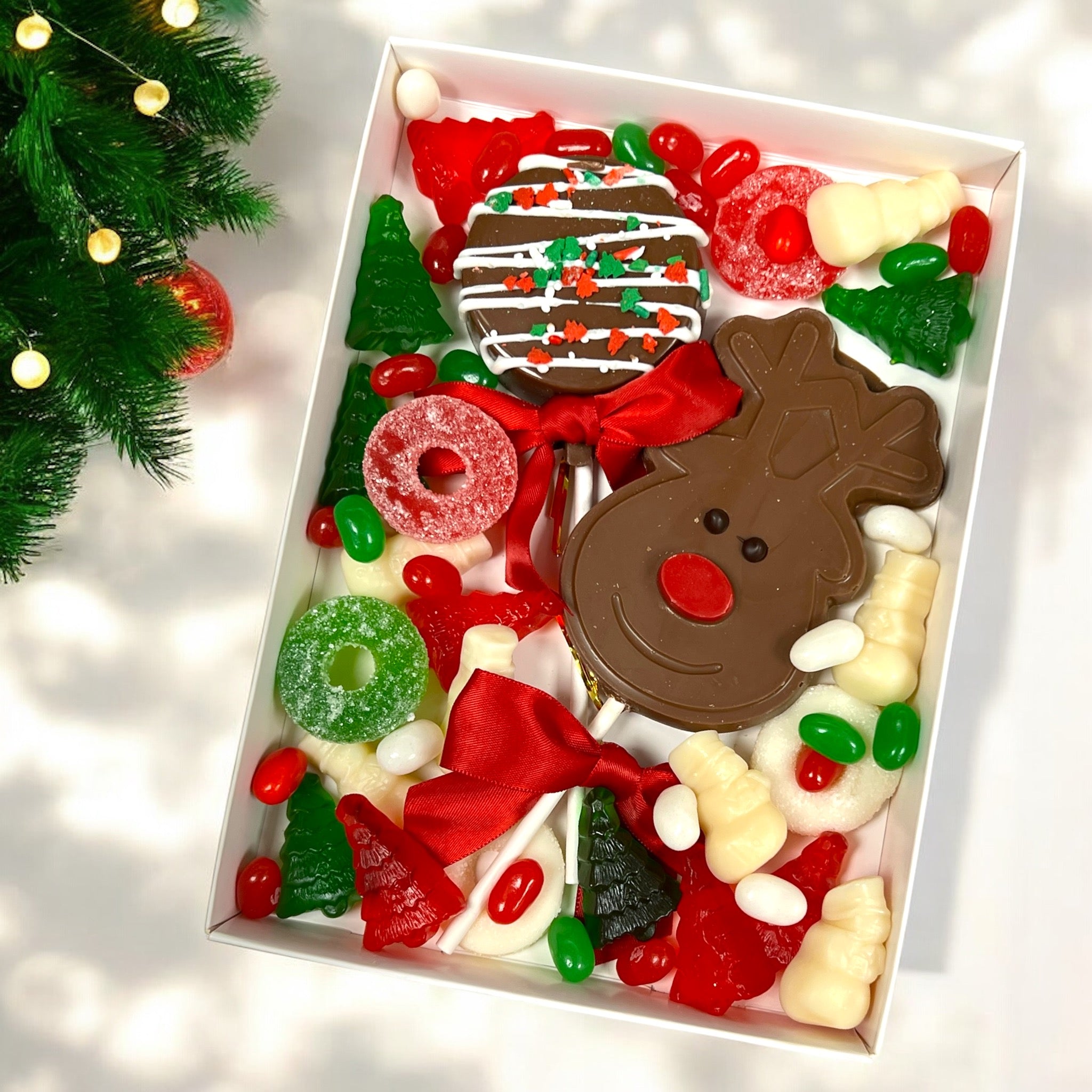 The Holiday Cheer Chocolate and Candy Gift Box is a delightful assortment of premium chocolates, festive candies, and sweet treats, perfect for spreading holiday joy. This carefully curated gift box is filled with an array of festive delights, including smooth milk chocolate, and colourful holiday-themed sweets. Designed to add a touch of sweetness to any celebration, it’s a great gift for friends, family, or coworkers. Whether for a holiday party, a stocking stuffer, or a thoughtful gesture, this gift box brings the spirit of the season to life with its decadent selection of chocolates and candies. Available in 3 sizes