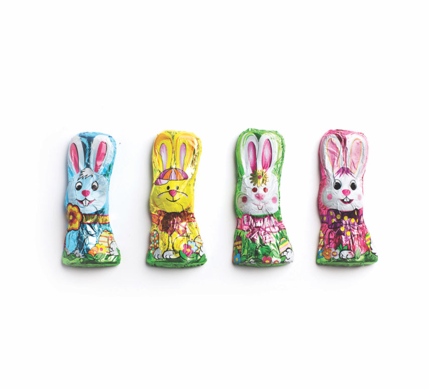 Highly detailed, solid premium milk chocolate funny bunny, wrapped in colorful Italian foils. Great for baskets, giftware, place setting or accessory to any gift.