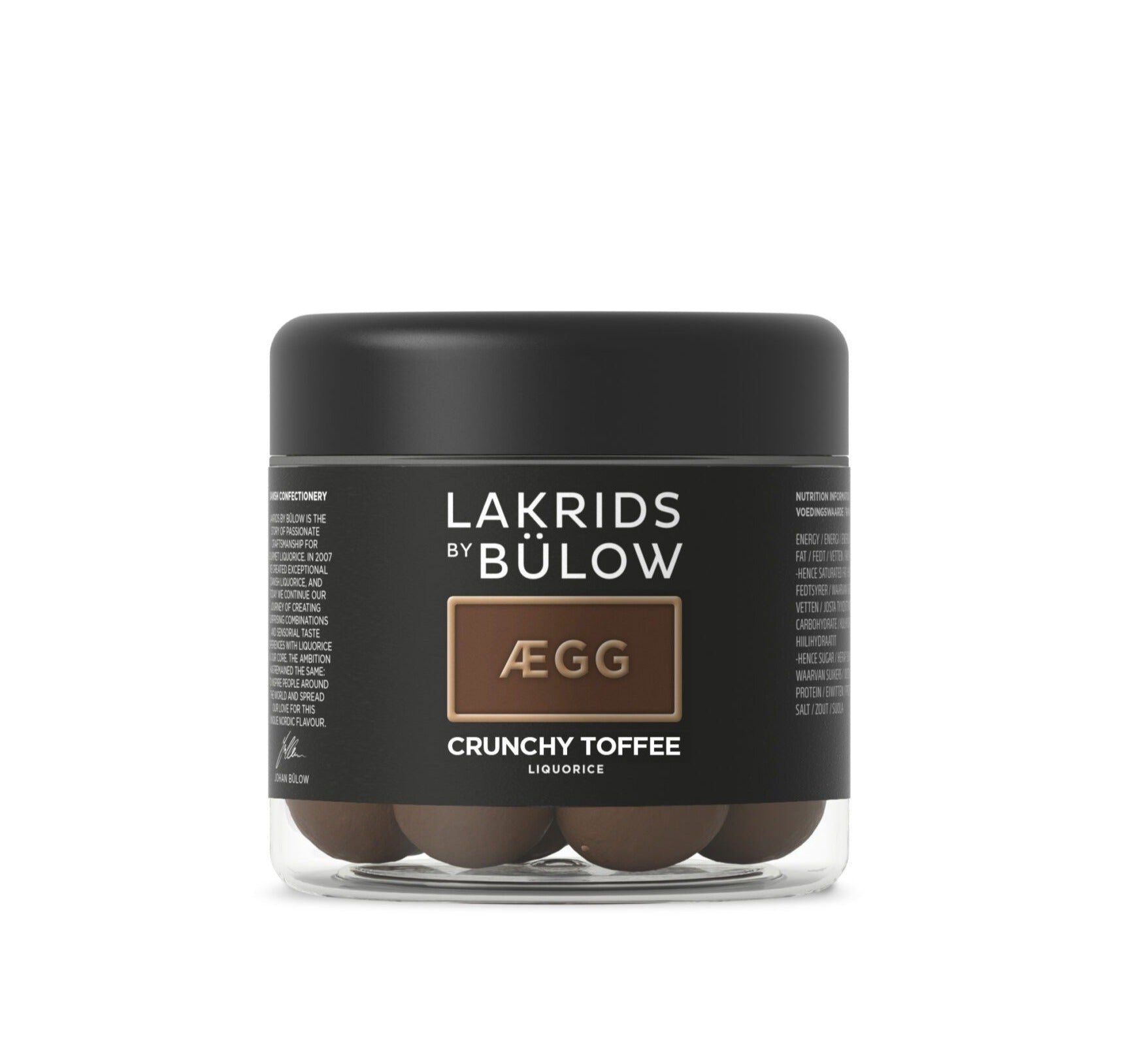 Lakrids Crunchy Toffee ÆGG. Enjoy a creamy sensation when you bite into the wonderful combination of delicious soft milk chocolate, French butter and cream with bits of crunchy caramel, completed by a core of salty liquorice.