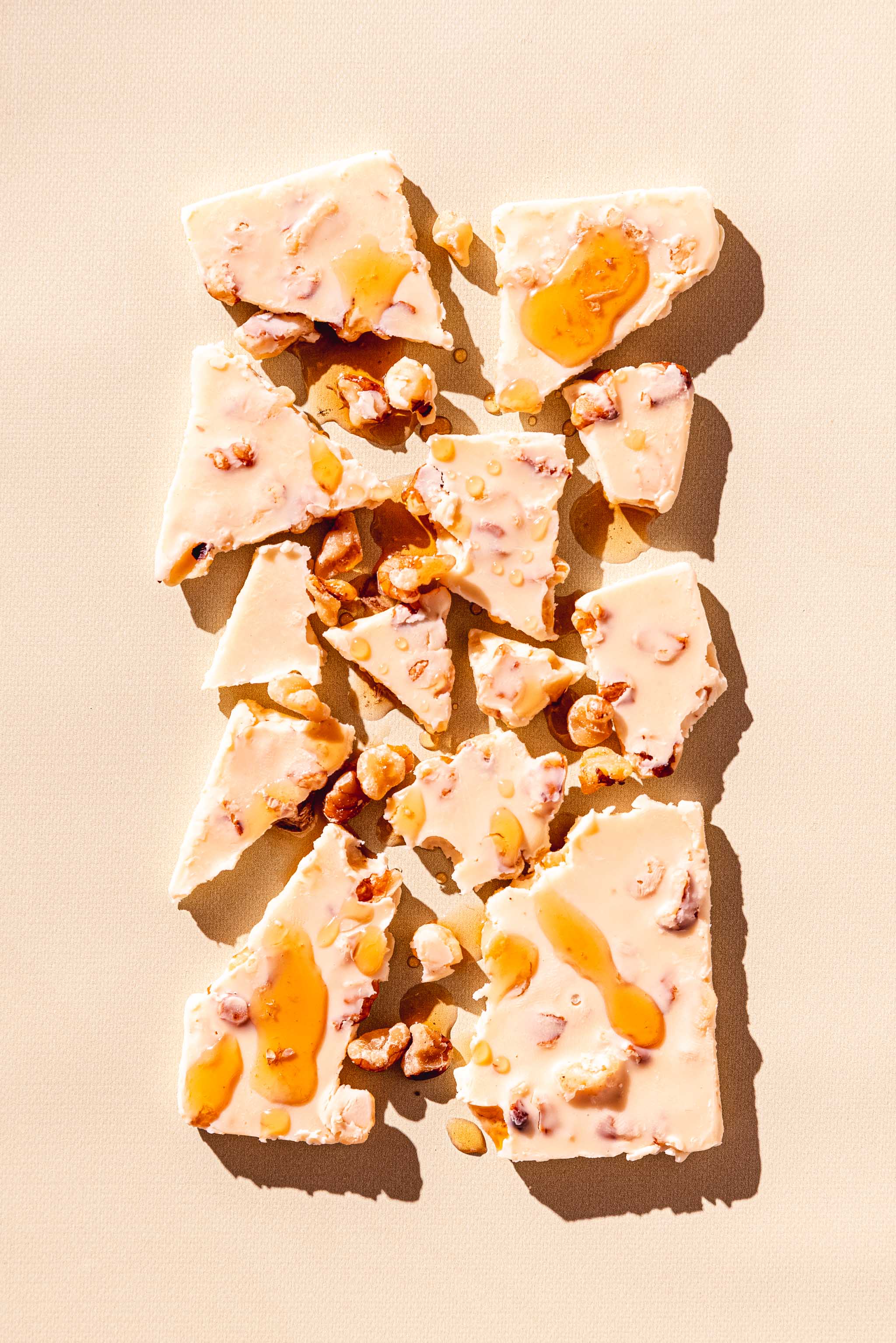 White Chocolate (Sugar, Cocoa Butter, Whole Milk, Soy Lecithin as an Emulsifier, Vanilla), Maple Syrup, Walnuts