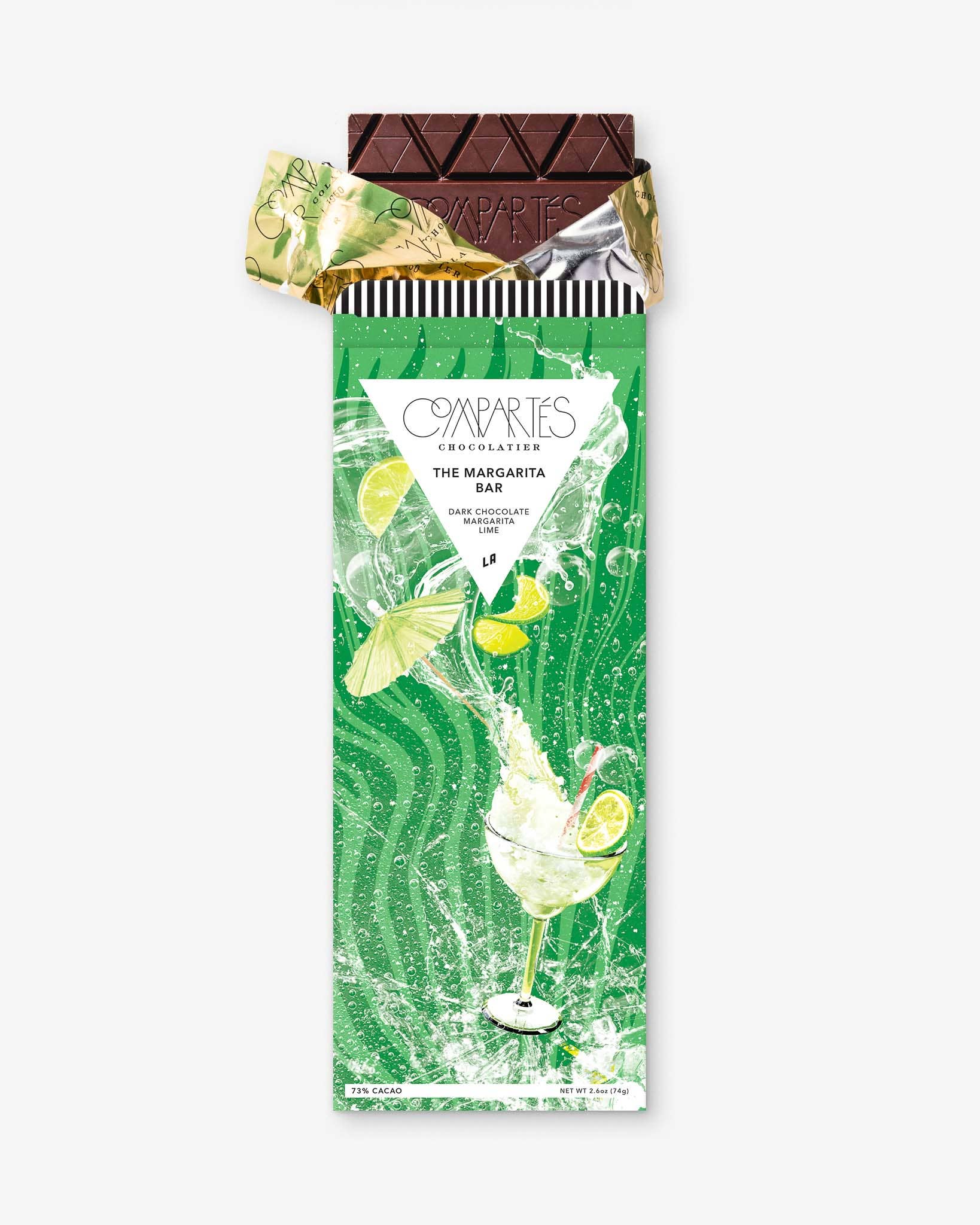 This chocolate bar is infused with tequila and lime for a MARGARITA Chocolate bar style -- sprinkled with sea salt when finished...this festive and delicious chocolate bar is our next big hit! Dark chocolate blended with tequila and a hint of lime, have a Margarita + Chocolate, the best of both worlds!