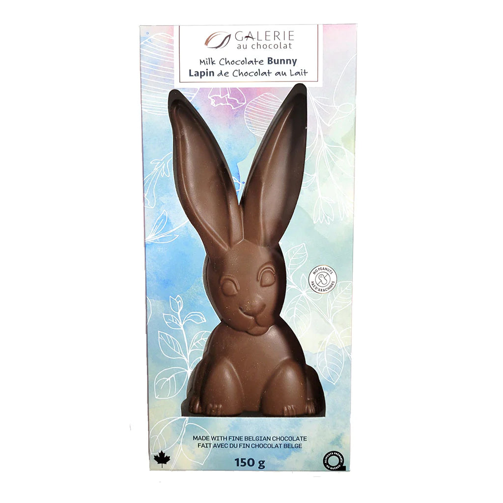 Galerie au Chocolat's milk chocolate bunny is a gourmet creation that's sure to be a hit at Easter. Bite into this delicious chocolate and share it with your family.
