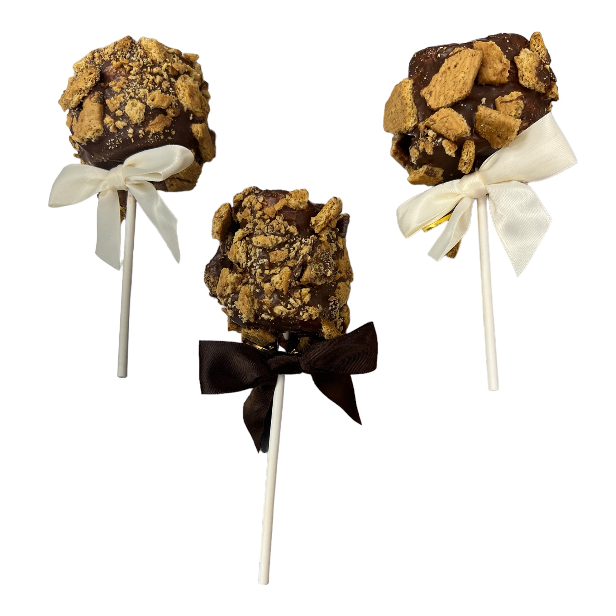 Taste the yumminess of our Smore's in a Pop! You’ll take your taste buds on a trip down memory lane through crushed honey graham goodness, giant marshmallow and creamy milk chocolate. The crackling of the campfire. The children’s ooey gooey grins. The sweet smell of toasty marshmallows in the air. Your favorite camping activities as a child come to life with just one scrumptious bite. It’s the easiest way to enjoy indoor s’mores, and it’s guaranteed to make you say oh my!