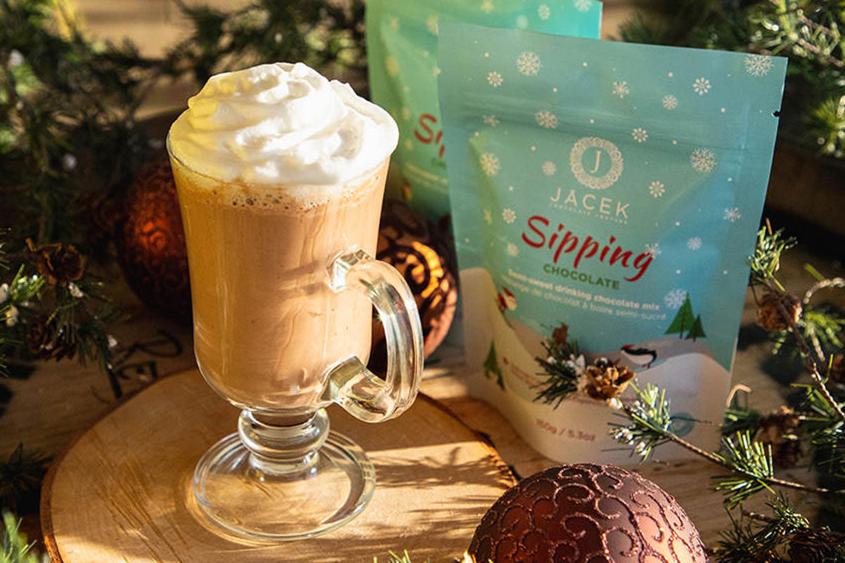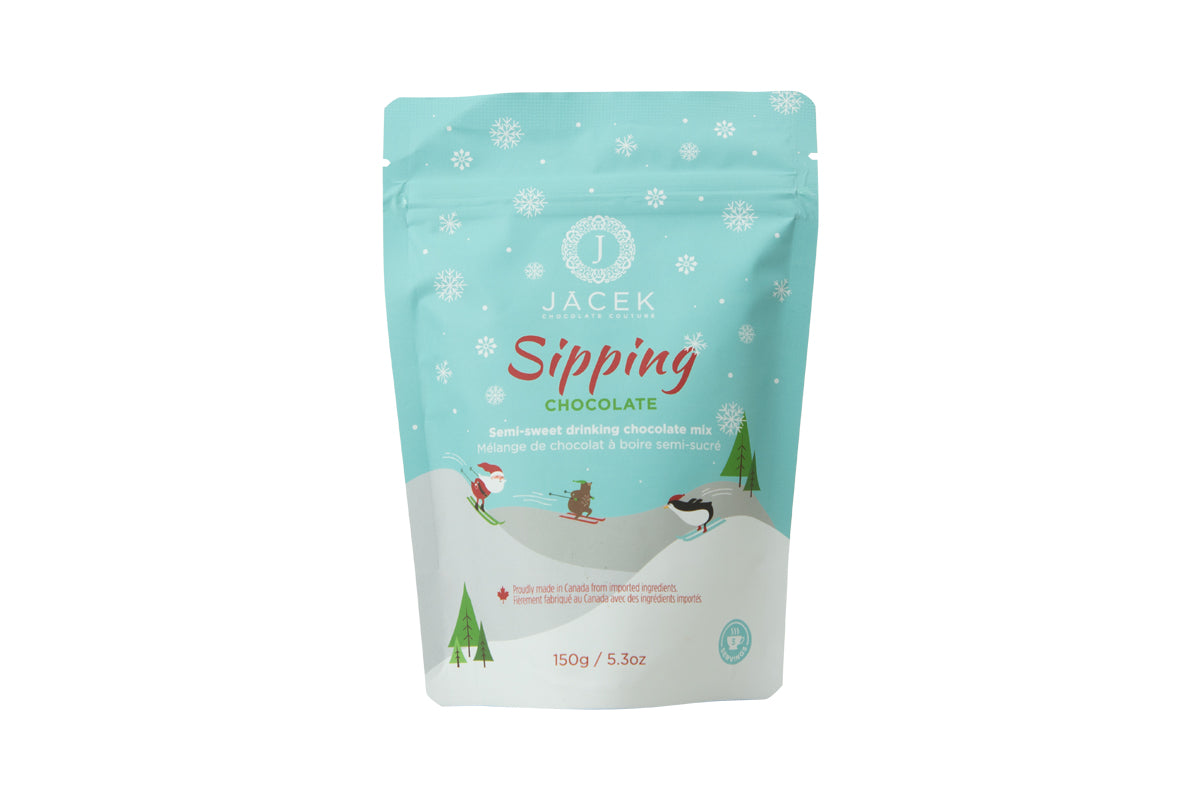 JACEK Sipping Chocolate holiday edition adds a festive touch to your favourite cocoa drink. Enjoy this sophisticated hot chocolate in its seasonal packaging, or try a new twist by sprinkling it over desserts or ice cream, adding to a latte for a mochacchino, or making a decadent chocolate fondue. 5.3oz