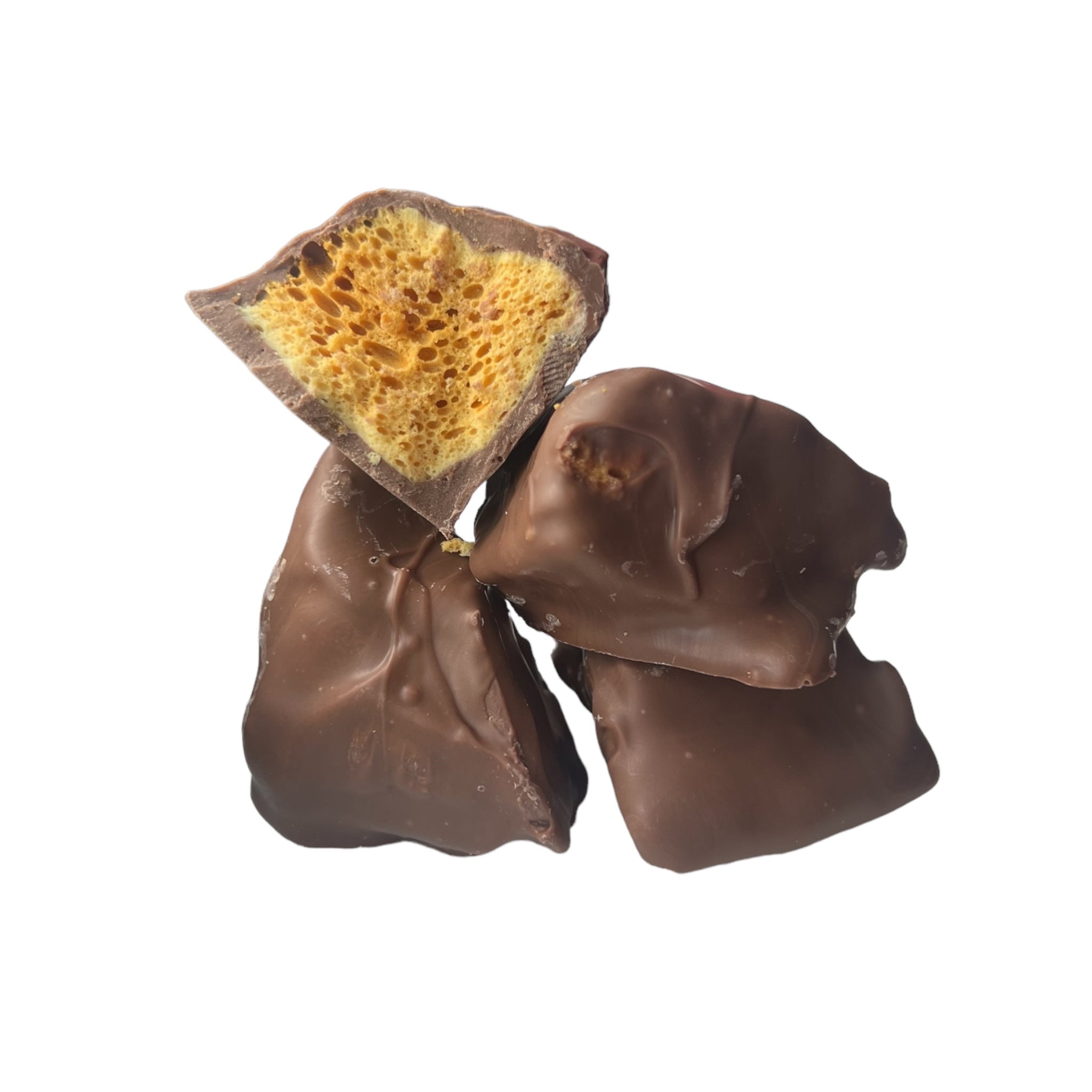 Our crunchy sponge toffee pieces are dipped in Belgium Milk Chocolate. This house-made treat is addictively delicious!