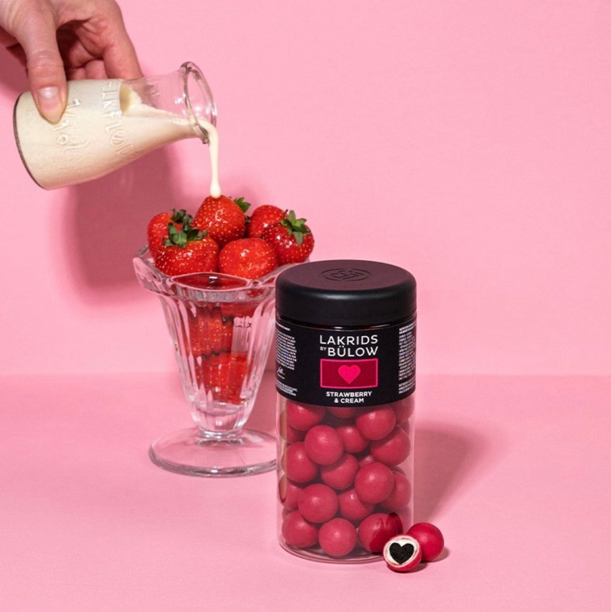 Discover a sweet synergy between tangy red strawberries, white soft cream and sweet heart-shaped licorice. White chocolate brings it all together and serves you an incredible taste experience of true Danish love.