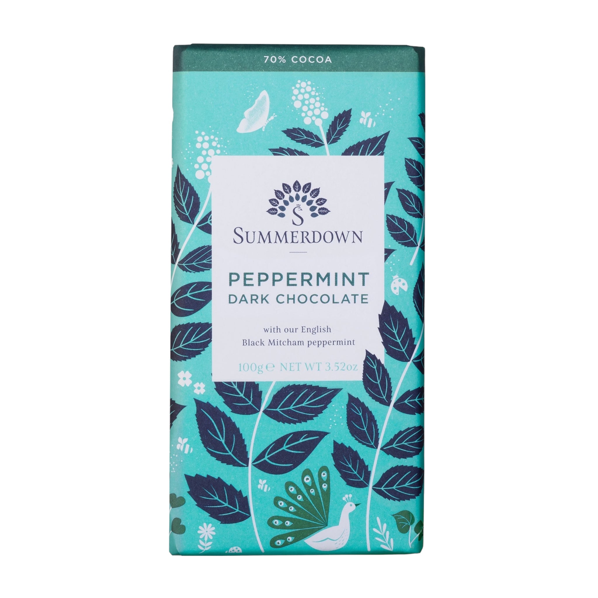 Summerdown’s prized single-estate Black Mitcham peppermint is paired with the finest single-origin Colombian 70% cocoa to create this rich, robust bar with a minty edge. Wrapped in fully compostable packaging and suitable for vegan diets. Made from completely compostable packaging, both wrapper and foil can be put on the compost heap (or in the bin) and they’ll decompose naturally. 100g
