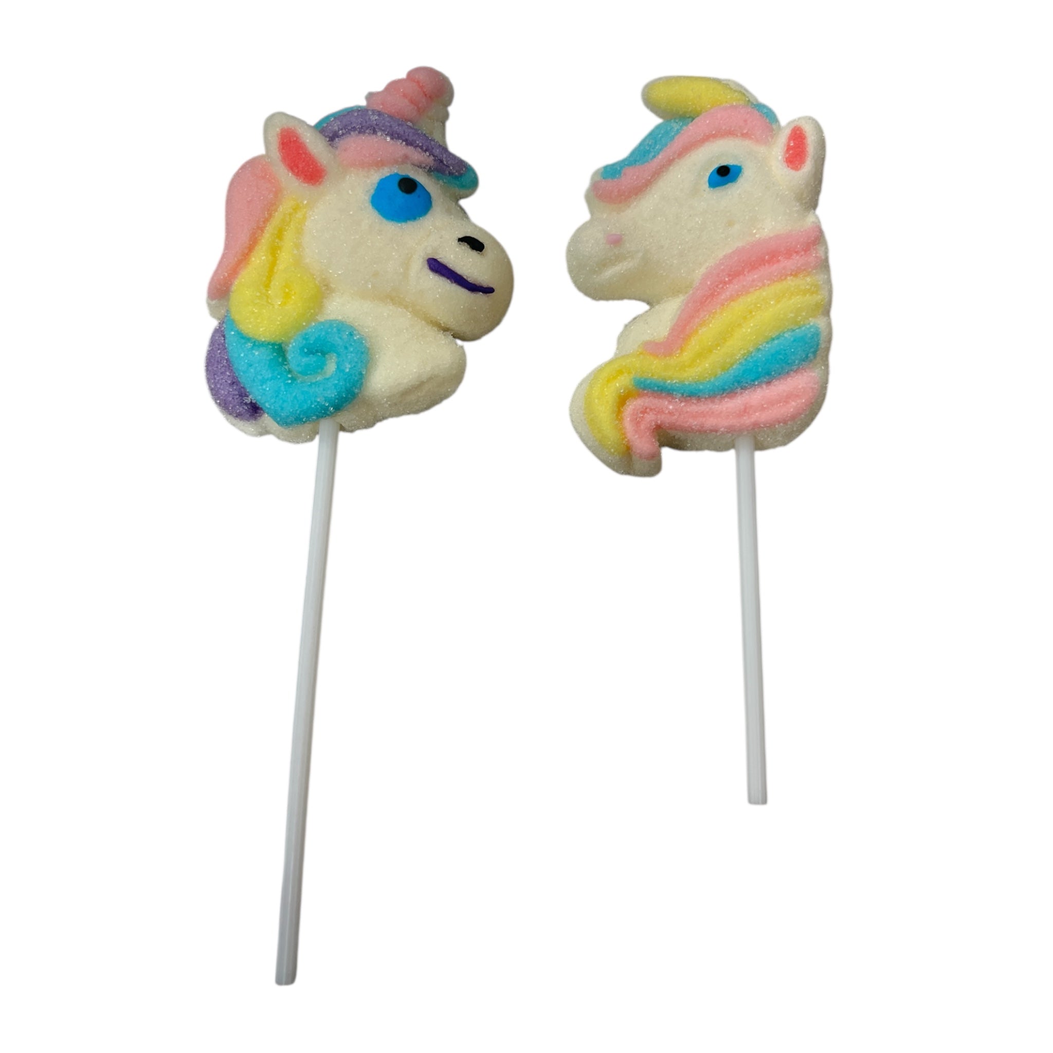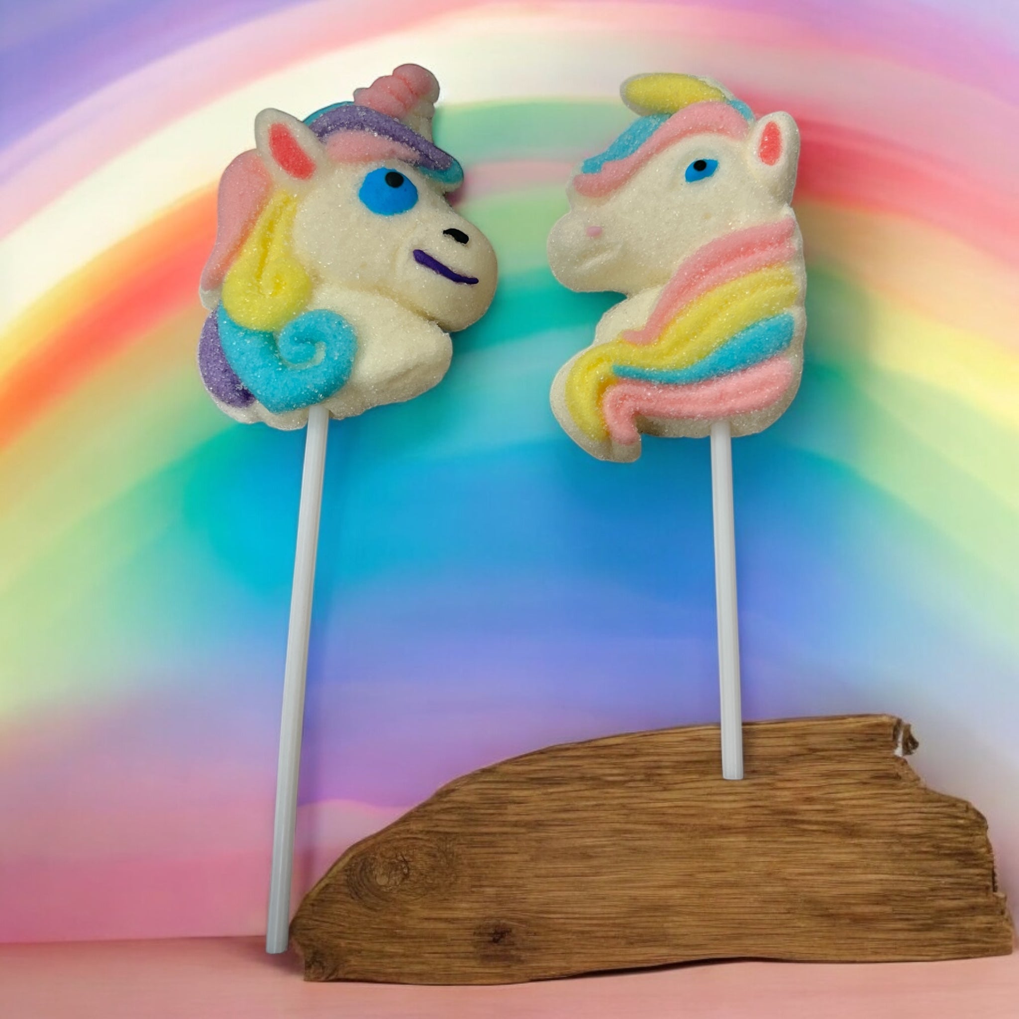 Unicorn Hand decorated marshmallows. Kabobs make a great addition to loot bags or as a topper for a present!