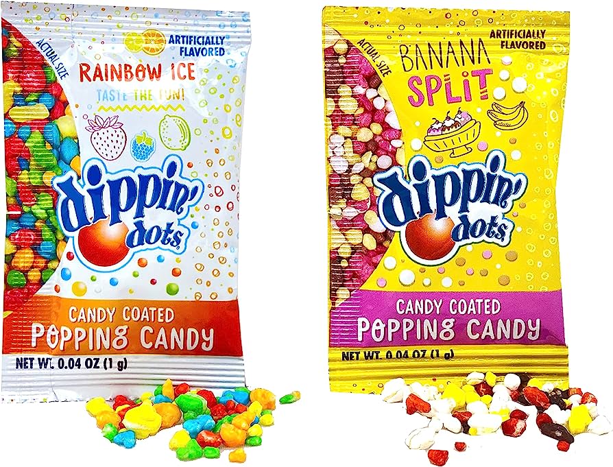 Get ready for the explosive fun of Dippin' Dots Popping Candy! Bursting with flavour and excitement, each tiny bead of candy delivers a delightful pop and fizz sensation on your tongue. Available in various mouthwatering flavours, this popping candy includes strawberry, blue raspberry, and green apple.
