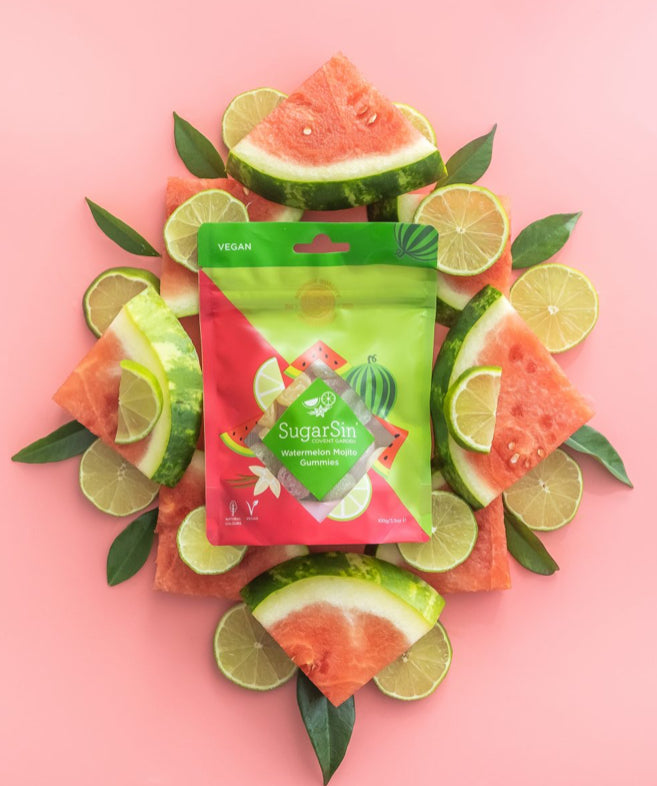 Refreshing assortment of juicy watermelon, zingy lime and smooth vanilla flavored gummy sweets, finished with a sweet and sour sugary tang for an explosive flavor getaway. These zingy treats will have you dreaming of sunny afternoons on the beach. Guaranteed to leave you wanting more! 100g