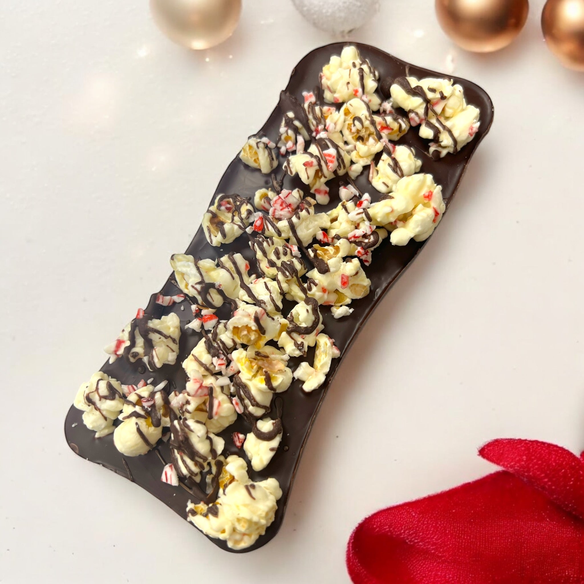 Indulge in the ultimate holiday treat with this Dark Chocolate Peppermint Bark! Rich, velvety Belgian dark chocolate forms the perfect base, topped with a crisp layer of refreshing peppermint pieces for a cool, minty crunch. But that's not all – it’s crowned with a festive mix of white chocolate-covered popcorn for a buttery, sweet contrast and crushed candy cane pieces. This delightful combination of textures and flavours will make every bite feel like a holiday celebration! Perfect for gifting, sharing, or savouring all to yourself.