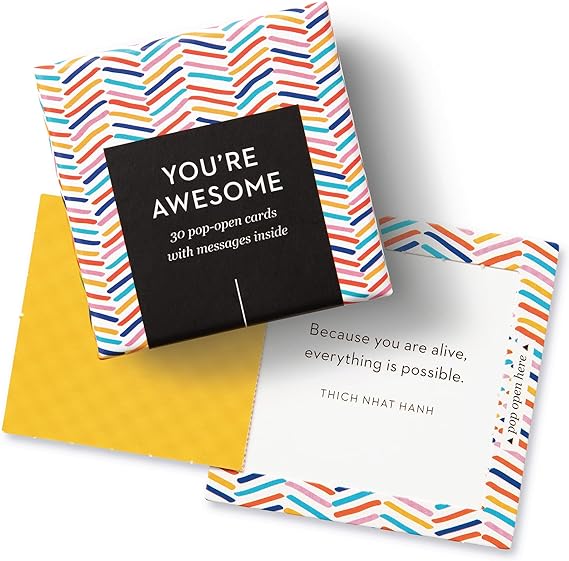 ThoughtFulls pop-open cards are a fun-filled way to add a little extra goodness into someone’s day. Each box of pop-open cards holds 30 uplifting quotes to spark unexpected delight. Tuck one into a greeting card, hide one in a mailbox, or leave one with your tip at a restaurant, and use the hidden messages to spread kindness wherever you go!
