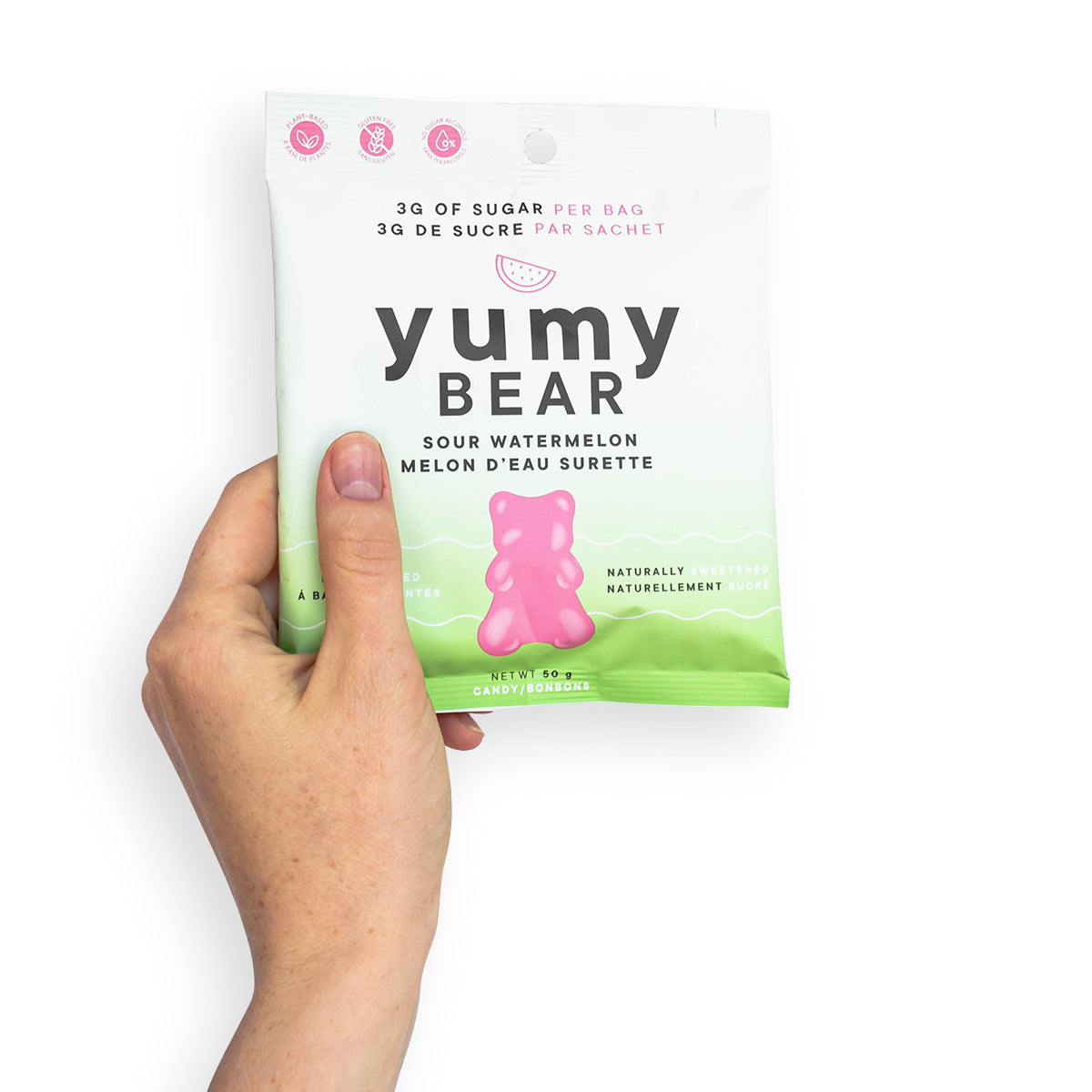 A childhood favourite candy, now with only 3 grams of sugar per bag! Sour Watermelon will leave your mouth watering and your taste buds wanting more. This Yumy Bear treat is deliciously sweet and sour, two sensations in one bite! Enjoy with a friend or all to yourself! 50g